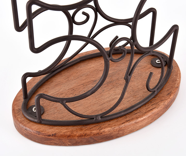 Wooden Wrought Iron Wine Rack for Dining Table Decor