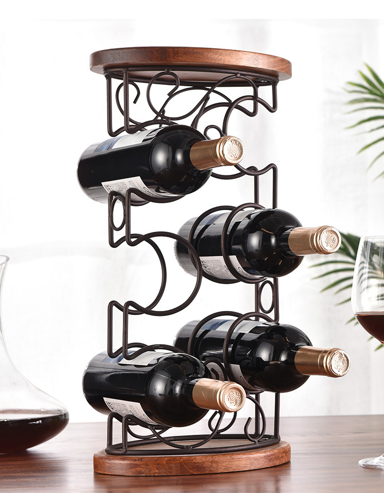 Discover the perfect blend of elegance and functionality with our exquisite wine rack. Crafted from high-quality iron and wood, this stunning piece showcases a European style that will elevate your dining space. Designed to hold up to six bottles of your favorite wine, it not only serves as a practical storage solution but also as a striking decorative element for your home.